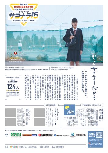 愛知県交通事故死者数15年連続ワーストからの脱却を目指す「サヨナラ15」キャンペーン。 3号目となる10月号も続々と発行されています。 過去5年間で最も人身事故の多い交差点についての8月号、 現場に真っ先に駆けつける救急隊の話を紹介した9月号に続く10…